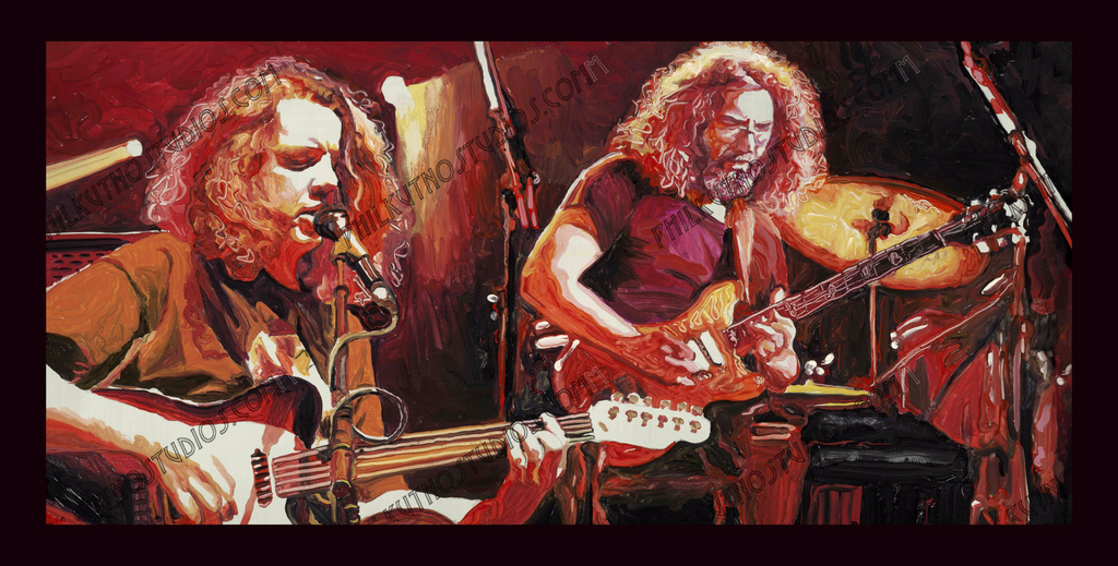 I have printed a select few of my paintings. These are printed on archival quality canvas with archival quality ink using a high-tech process on a high-tech large scale printer. They are stretched just like a painting and framed in a basic black wood frame.